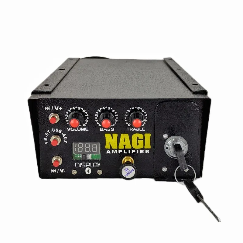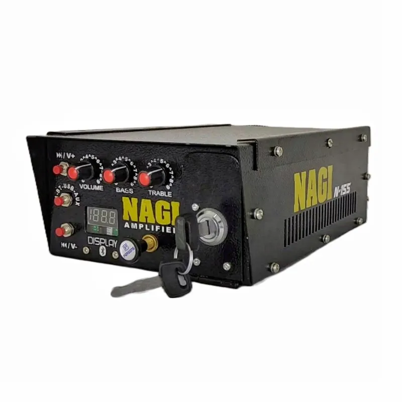 Upgrade to the powerful N155 tractor music system, built for 12V DC tractors with massive 180+180W RMS stereo output for unmatched loud and clear sound in open fields. Supports FM, USB, and Bluetooth connectivity. Features overload and overheat cut-off protection with secure pendrive lock system for extra safety. Heavy-duty metal body, premium performance. Made for true sound lovers.